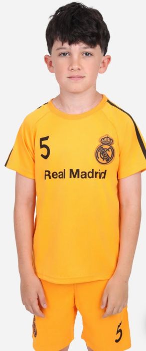 חליפת כדורגל מדריד כתומה עם מספר 5 של ריאל מדרחד הקבוצה עם הכי הרבה זכיות בליגת האלופות