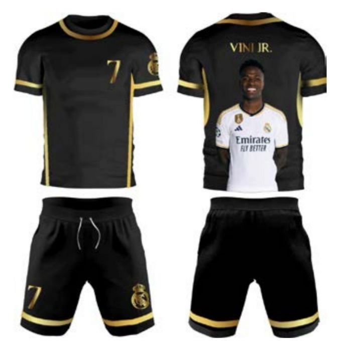 חליפת כדורגל מדריד וינסיוס עם מספר ותמונה של הכוכב ממדריד