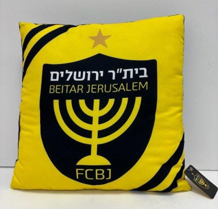 כרית של בית"ר ירושלים אמפריה בצהוב שחור יכולה להיות מתנה נהדרת לחדר של אוהד בית"ר אפשר גם להשתמש איתה במגרש