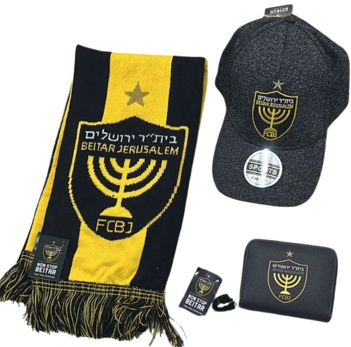 חבילה של מוצרים של בית"ר ירושלים בצהוב שחור .